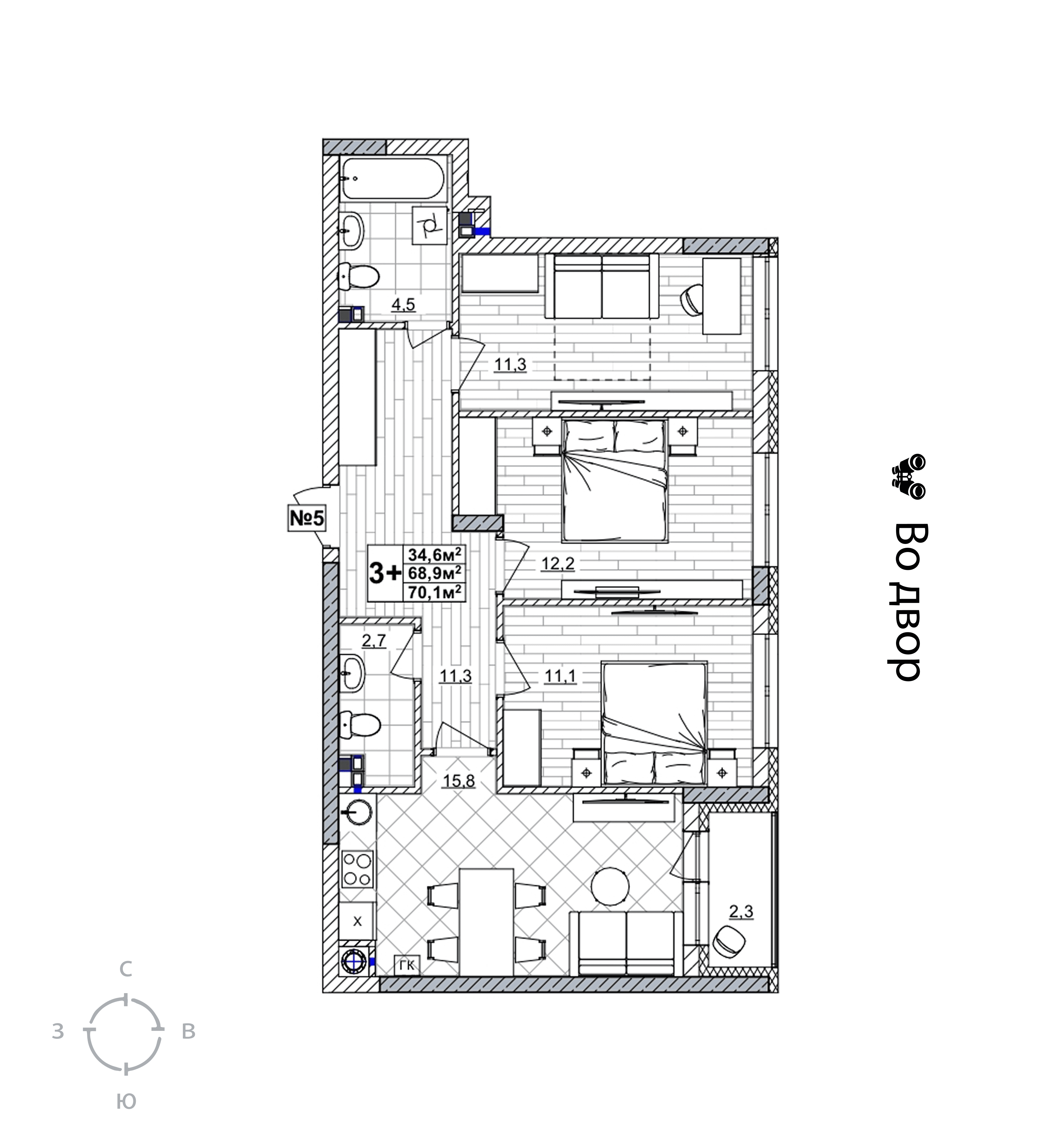 Квартира в Смородина 70.1м2 на 1 этаже за 10 590 000 Р.