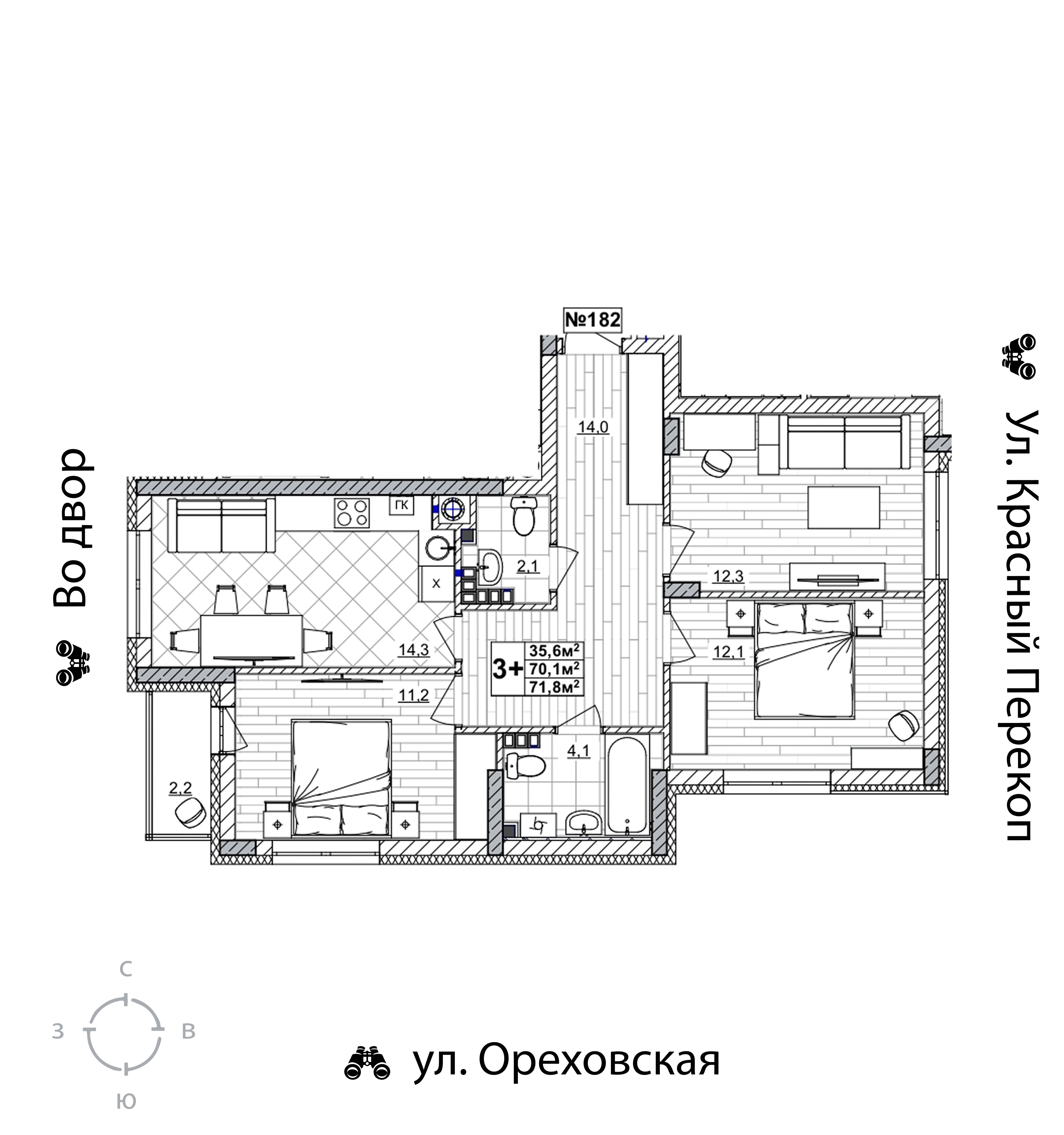 3-комнатная квартира - 70.8м2