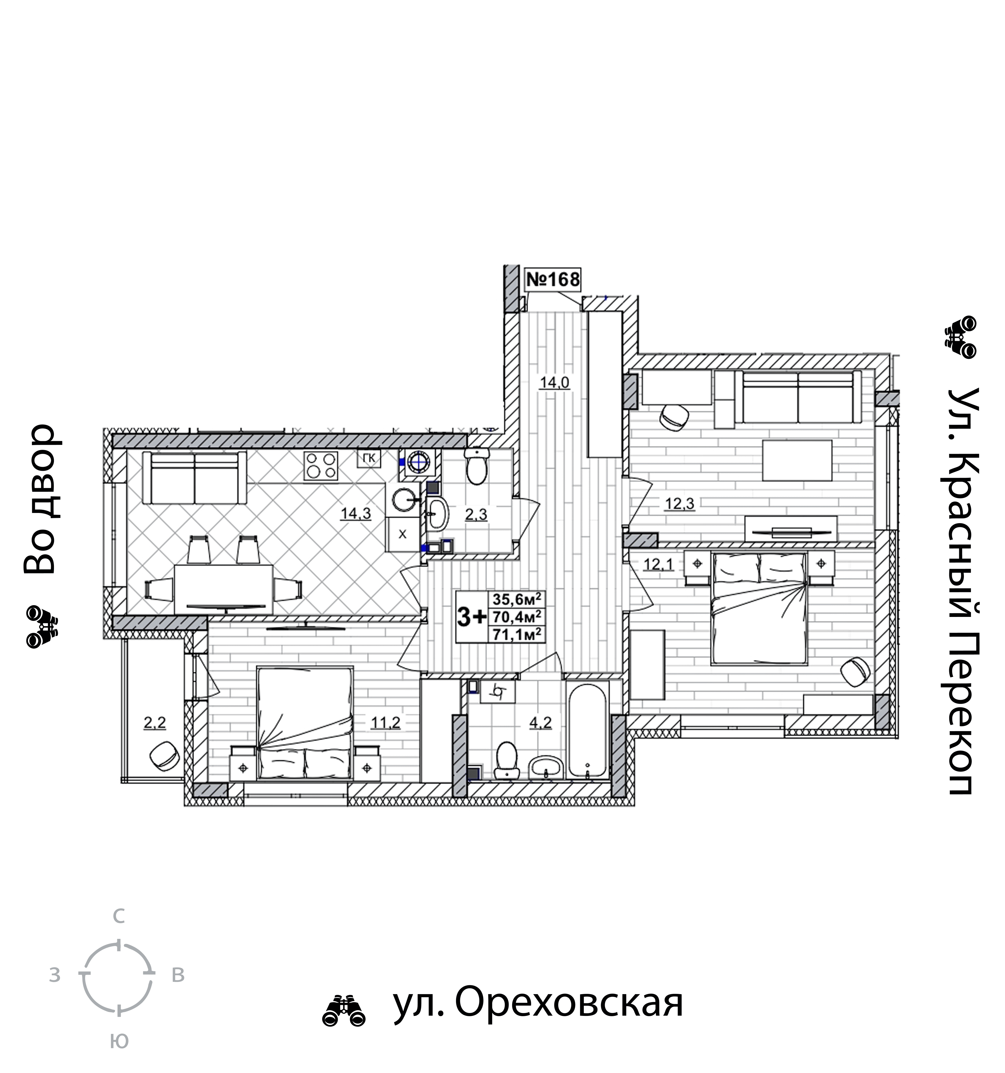 3-комнатная квартира - 71.1м2