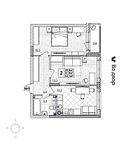 2 комн., от