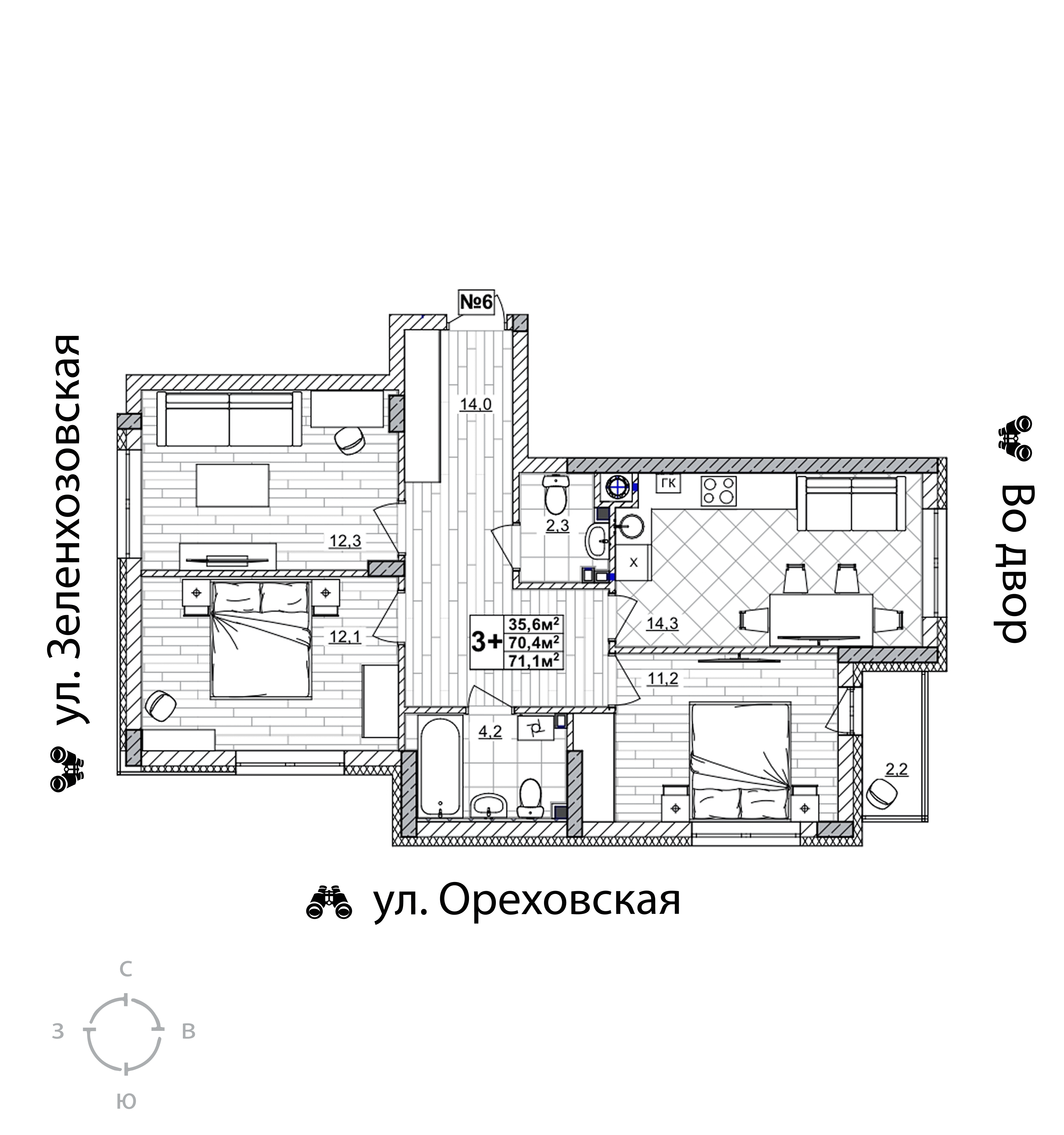 3-комнатная квартира - 71.1м2