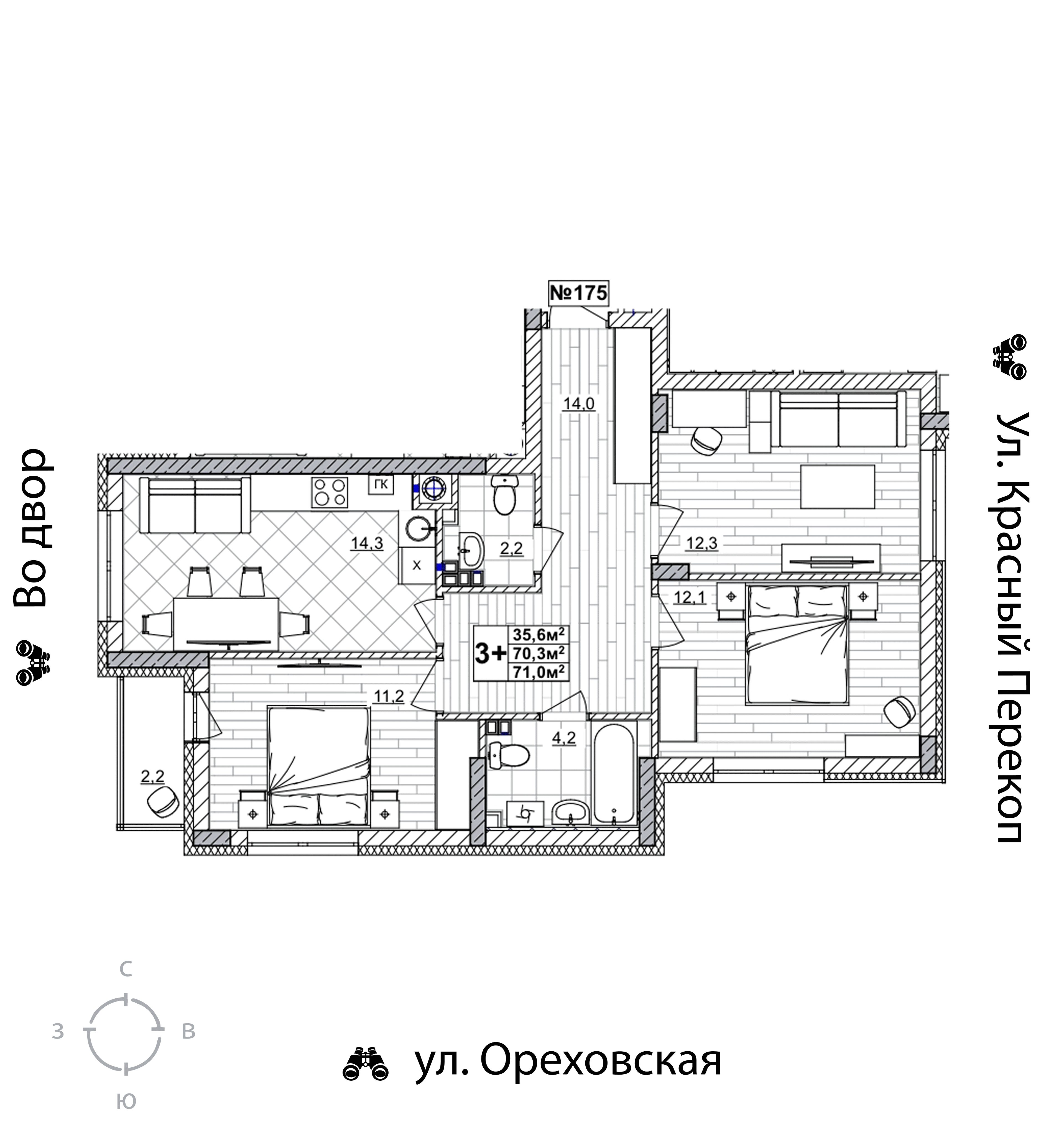 Квартира в Смородина 71м2 на 2 этаже за 12 190 000 Р.