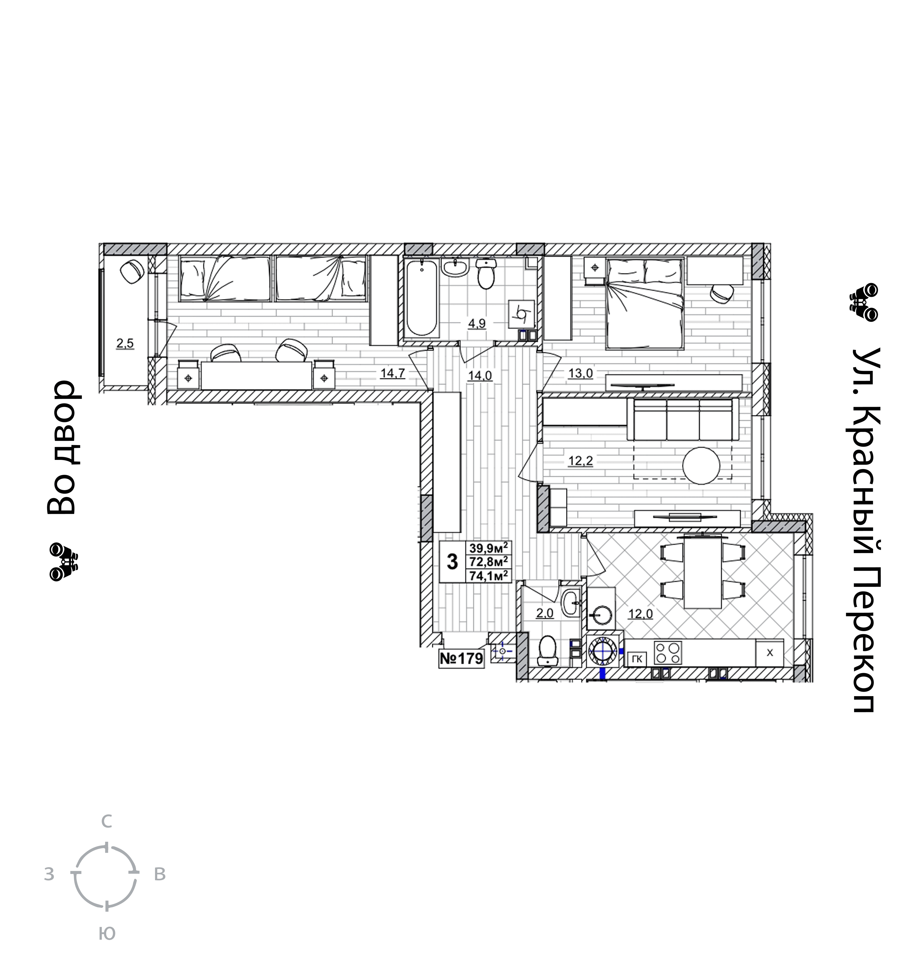 Квартира в Смородина 73.8м2 на 2 этаже за 12 490 000 Р.