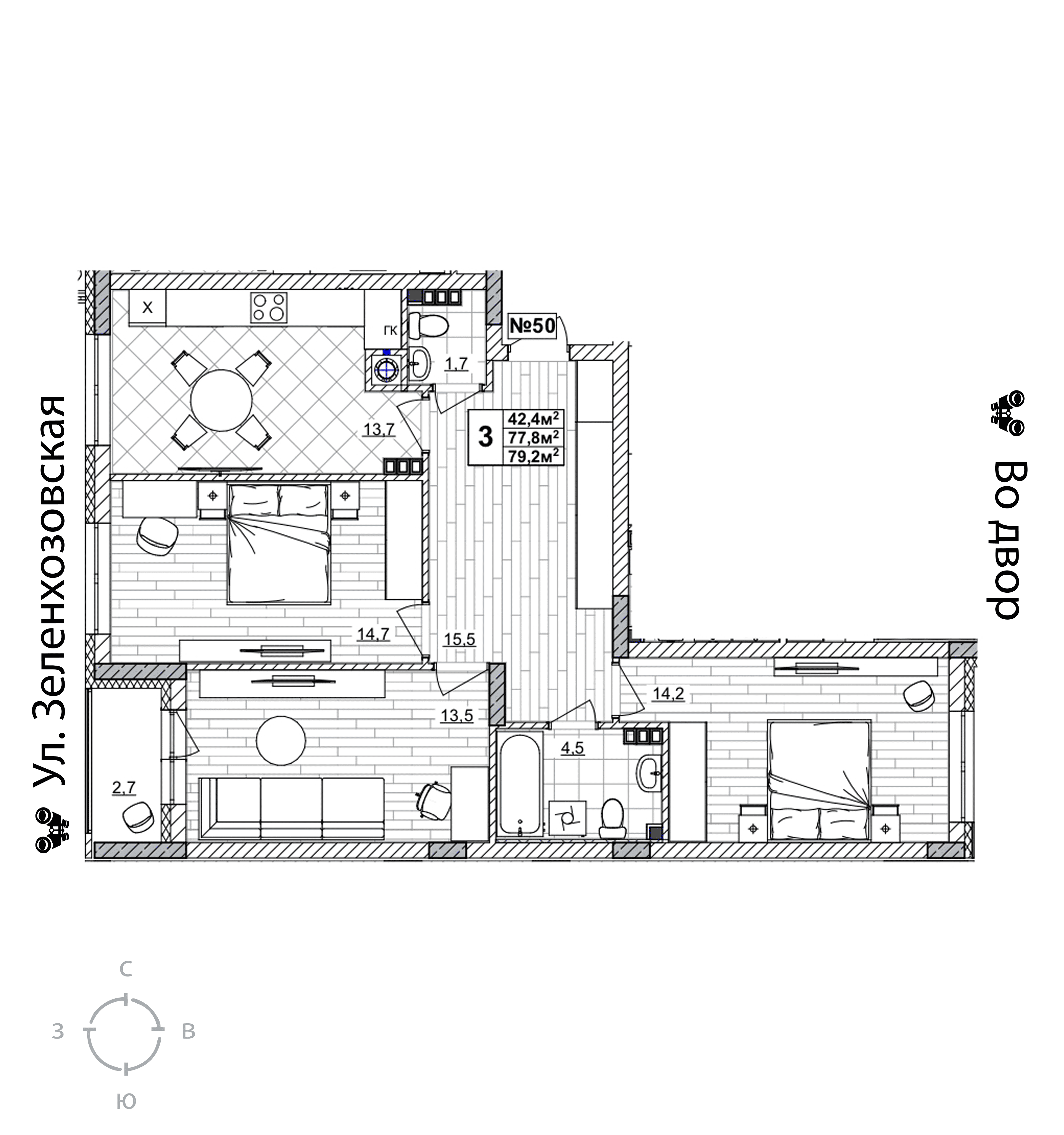 Квартира в Смородина 79.2м2 на 3 этаже за 13 190 000 Р.