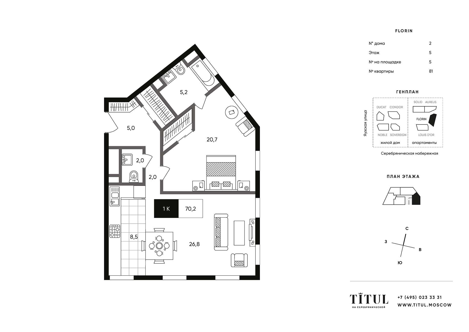 Квартира в TITUL на Серебрянической 70.20м2 на 5 этаже за 58 228 372 Р.